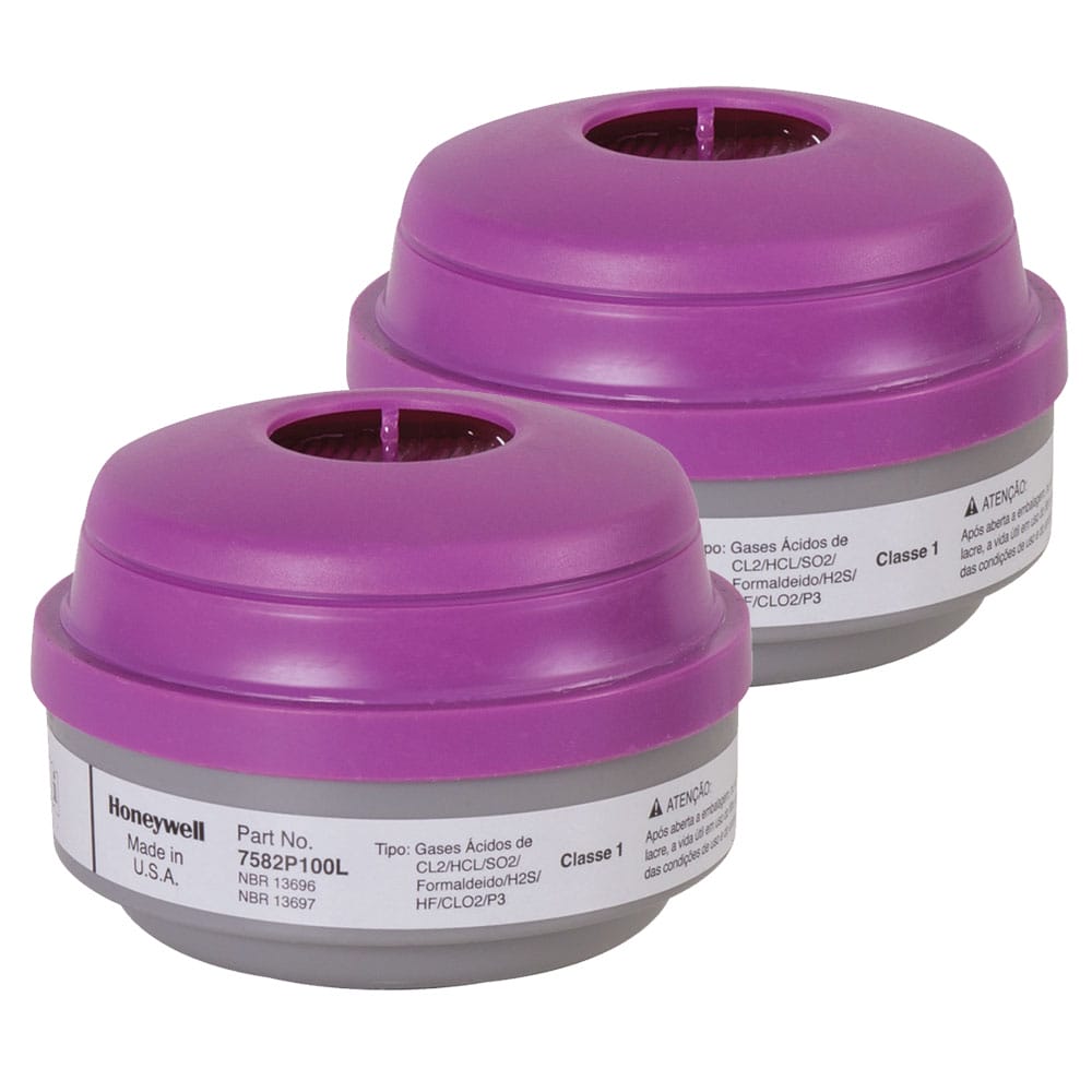 Honeywell North 7582P100L Combination Gas and Vapor Cartridge, Acid Gas (AG), White/Magenta, P100 Filter 1 Pair